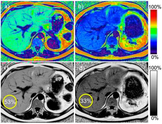 - Kang, G.H.; Cruite, I.; Shiehmorteza, M.; Wolfson, T.; Gamst, A.C.; Hamilton, G.; Bydder, M.; Middleton, M.S.; Sirlin, C.B. Reproducibility of MRI-determined proton density fat fraction across two different MR scanner platforms. J. Magn. Reson. Imaging 2011, 34, 928–934. [Google Scholar] [CrossRef] [PubMed]
