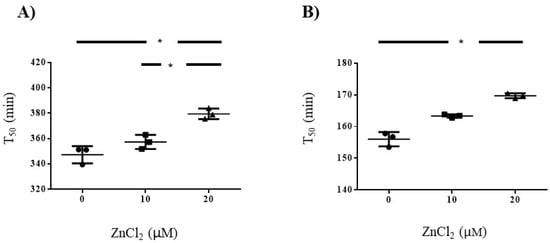 2.7. In Vitro Experiment to Examine Direct Effect of Exogenous Zinc on T50