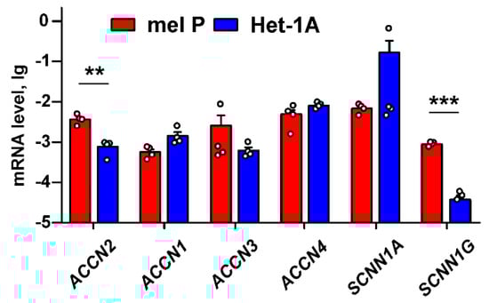 3.2. Acidification of Cell Environment Up-Regulates Expression of the ASIC1a, α-ENaC, and γ-ENaC Subunits in Metastatic Melanoma Cells