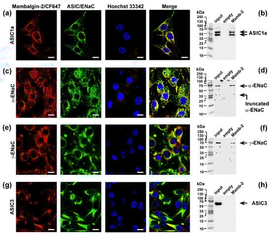 3.6. Mambalgin-2 Interacts with ASIC1, α-ENaC, and γ-ENaC on the Cell-Surface Membrane of Mel P Cells