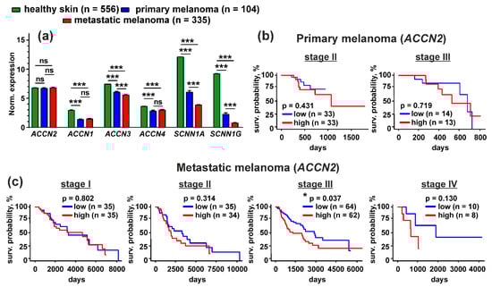 3.7. Up-Regulation of the ACCN2 Expression in Patients with Metastatic Melanoma Correlates with Poor Survival Prognosis