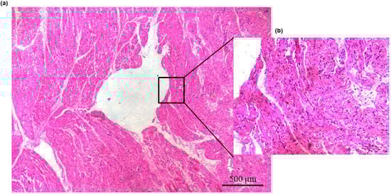 Muscular tissue surrounding the implantable sensor insertion area showed no signs of alteration around the site of implantation. Normal muscular parenchyma, with neither inflammatory reaction nor deposition of collagen fibers, was observed (Figure 4).