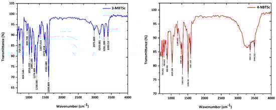 FTIR spectra of 3-MBTSc and 4-NBTSc compounds in the wavenumber range of 600–4000 cm−1.