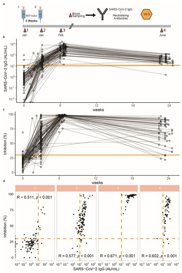 3.2. SARS-CoV-2 IgG Response and Neutralisation Potency following Vaccination