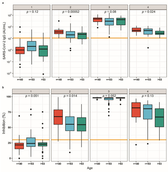 3.3. IgG Titres and Respective Neutralisation Potency in Relation to Age
