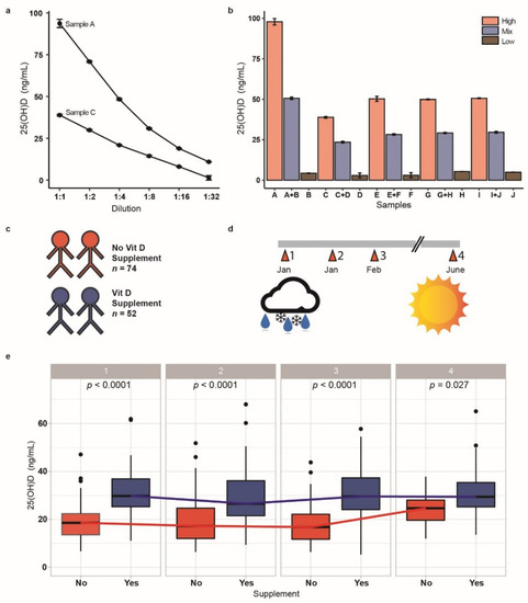 - Lehmann, U.; Riedel, A.; Hirche, F.; Brandsch, C.; Girndt, M.; Ulrich, C.; Seibert, E.; Henning, C.; Glomb, M.A.; Dierkes, J.; et al. Vitamin D3 supplementation: Response and predictors of vitamin D3 metabolites—A randomized controlled trial. Clin. Nutr. 2016, 35, 351–358. [Google Scholar] [CrossRef]