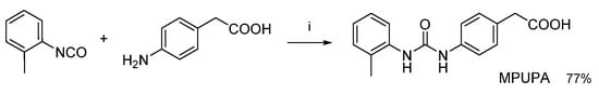 The MPUPA moiety was prepared (Supplementary Materials) by reaction between o-tolyl isocyanate and 2-(4-aminophenyl)acetic acid (Scheme 1).