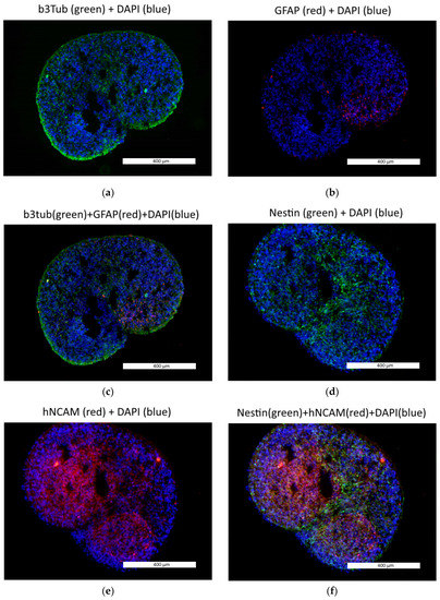 - Paşca, A.M.; Sloan, S.A.; Clarke, L.E.; Tian, Y.; Makinson, C.D.; Huber, N.; Kim, C.H.; Park, J.Y.; O’Rourke, N.A.; Nguyen, K.D.; et al. Functional cortical neurons and astrocytes from human pluripotent stem cells in 3D culture. Nat. Methods 2015, 12, 671–678. [Google Scholar] [CrossRef] [Green Version]