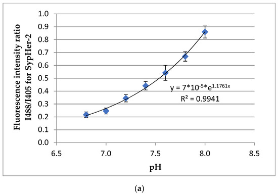 - Matlashov. M.E.; Bogdanova, Y.A.; Ermakova, G.V.; Mishina, N.M.; Ermakova, Y.G.; Nikitin, E.S.; Balaban, P.M.; Okabe, S.; Lukyanov, S.; Enikolopov, G.; Zaraisky, A.G.; et al. Fluorescent ratiometric pH indicator SypHer2: Applications in neuroscience and regenerative biology. Biochim. Biophys. Acta 2015, 1850, 2318–2328. [Google Scholar]