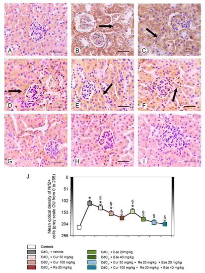 - Kim, K.S.; Lim, H.J.; Lim, J.S.; Son, J.Y.; Lee, J.; Lee, B.M.; Chang, S.C.; Kim, H.S. Curcumin ameliorates cadmium-induced nephrotoxicity in Sprague-Dawley rats. Food Chem. Toxicol. 2018, 114, 34–40. [Google Scholar] [CrossRef] [PubMed]