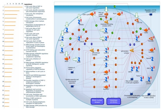 List of co-expressed genes with Solute carrier 35A2 (SLC35A2) co-expressed in BRCA database was analyzed using a MetaCore enrichment pathway analysis. The strategy was to compile lists of the top 10% expressed genes from both the METABRIC (2000 genes) and Pan-Cancer (1800 genes) prior to overlapping them to create a total gene list of 1201. The gene list was taken from TCGA Pan-Cancer Atlas and METABRIC BRCA patient databases while the pathway list was organized by the −log[p-value]. When doing the biological process analysis, the route “Cell cycle_Involvement of APC in cell cycle regulation” was at the top of the list.