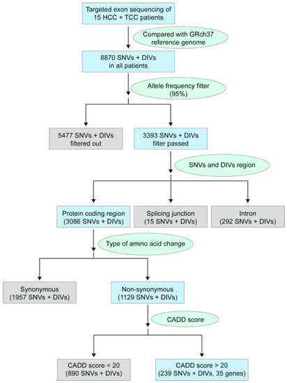 3.1. Identifying a Panel of Potentially Pathogenic Exonic Variants in Patients with HCC/TCC DPC