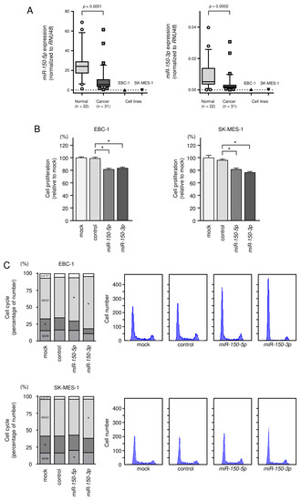Mizuno K, Tanigawa K, Misono S, Suetsugu T, Sanada H, Uchida A, Kawano M, Machida K, Asai S, Moriya S, et al. Regulation of Oncogenic Targets by Tumor-Suppressive miR-150-3p in Lung Squamous Cell Carcinoma. Biomedicines. 2021; 9(12):1883. https://doi.org/10.3390/biomedicines9121883