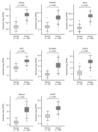- Hu, D.D.; Chen, H.L.; Lou, L.M.; Zhang, H.; Yang, G.L. SKA3 promotes lung adenocarcinoma metastasis through the EGFR-PI3K-Akt axis. Biosci Rep. 2020, 40. [Google Scholar] [CrossRef] [Green Version]