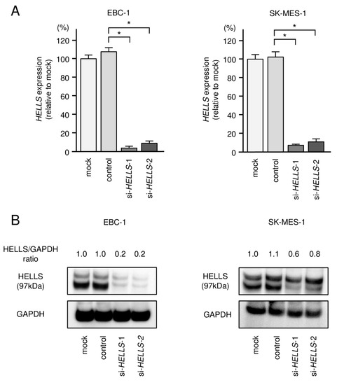 - Liu, X.; Hou, X.; Zhou, Y.; Li, Q.; Kong, F.; Yan, S.; Lei, S.; Xiong, L.; He, J. Downregulation of the helicase lymphoid-specific (HELLS) gene impairs cell proliferation and induces cell cycle arrest in colorectal cancer cells. OncoTargets Ther. 2019, 12, 10153–10163. [Google Scholar] [CrossRef] [PubMed] [Green Version]