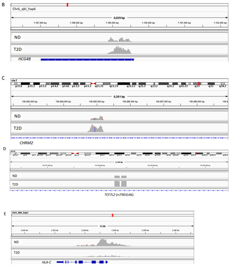 Another surprising finding from our study is that we also identified several loci in the HLAs with most modifications in H3K9ac enrichment in T2D. Furthermore, we also found a significant association between T2D H3K9ac enrichment and pathways related to immunity, notably, T1D as one of the major identified pathways. The HLAs are reported to account for up to 50% of the familial aggregation of T1D, with the major genetic determinants in polymorphisms of class II HLA DQ and DR [40]. In our study, we identified several genetic loci in HLA that have been associated with T1D to be the most differentially enriched in H3K9ac, e.g., HLA-B, HLA-DQB1, HLA-DRB, HLA-DRB5, and HLA-DQA1. It has previously been shown that there is no fundamental difference between the immune activation and inflammation present in atherosclerosis among non-diabetics as compared to diabetics [24]. Albeit speculation, we may suggest that immune responses in T1D may also be operating in T2D, or that the two disease conditions may share common pathways.