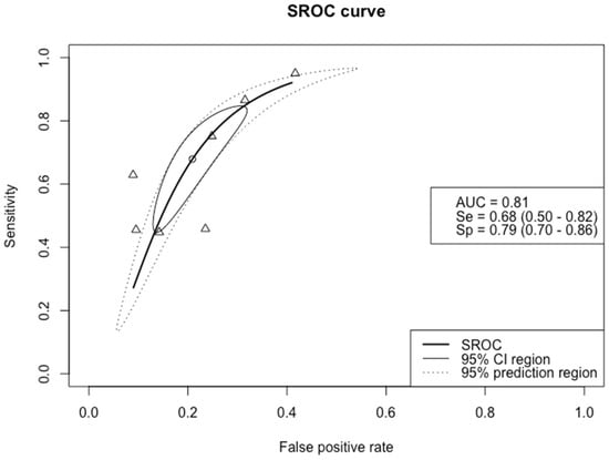 - Reitsma, J.B.; Glas, A.S.; Rutjes, A.W.; Scholten, R.J.; Bossuyt, P.M.; Zwinderman, A.H. Bivariate analysis of sensitivity and specificity produces informative summary measures in diagnostic reviews. J. Clin. Epidemiol. 2005, 58, 982–990. [Google Scholar] [CrossRef] [PubMed]
