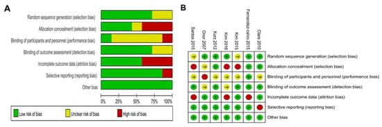 Risk of bias assessment across randomized controlled trials. Risk of bias graph (A) and summary (B).