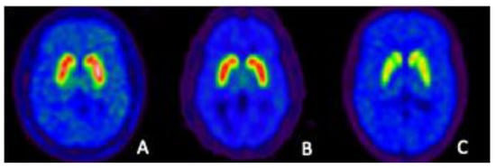- Kerstens, V.S.; Varrone, A. Dopamine transporter imaging in neurodegenerative movement disorders: PET vs. SPECT. Clin. Transl. Imaging 2020, 8, 1–8. [Google Scholar] [CrossRef]