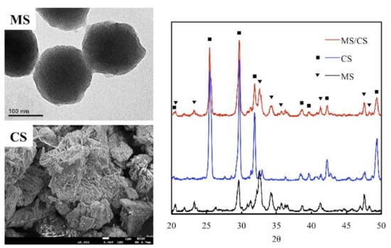 The microstructure and composition of mesoporous calcium silicate (MS) and calcium sulfate (CS) powders and composites. The scale bar of the SEM photograph is 1 µm.