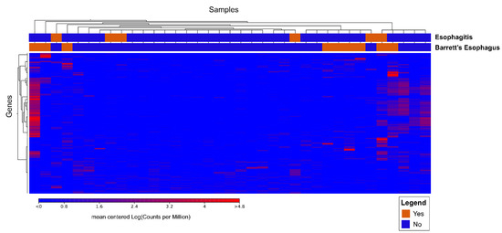 There was a distinct transcriptome profile seen in patients with Barrett’s esophagus. Cluster analysis data is shown in Figure 5. There were a large number of genes that were differentially expressed when comparing the two groups.