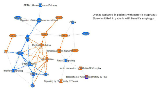 Ingenuity pathway analysis of processes related to Barrett’s transcriptome.