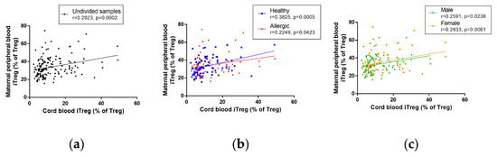 - Hrdý, J.; Kocourková, I.; Prokešová, L. Impaired function of regulatory T cells in cord blood of children of allergic mothers: Tregs in cord blood and allergy risk. Clin. Exp. Immunol. 2012, 170, 10–17. [Google Scholar] [CrossRef] [PubMed]