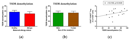 - Hinz, D.; Bauer, M.; Röder, S.; Olek, S.; Huehn, J.; Sack, U.; Borte, M.; Simon, J.C.; Lehmann, I.; Herberth, G.; et al. Cord blood Tregs with stable FOXP3 expression are influenced by prenatal environment and associated with atopic dermatitis at the age of one year. Allergy 2012, 67, 380–389. [Google Scholar] [CrossRef] [PubMed]