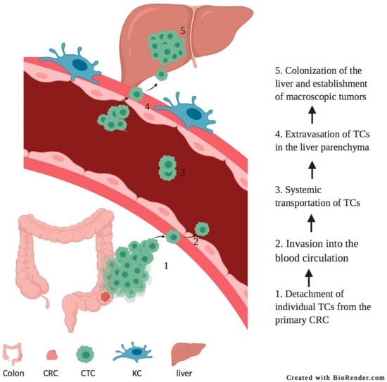 - Jin, K.; Gao, W.; Lu, Y.; Lan, H.; Teng, L.; Cao, F. Mechanisms regulating colorectal cancer cell metastasis into liver (Review). Oncol. Lett. 2012, 3, 11–15. [Google Scholar] [CrossRef][Green Version]