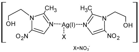 Silver (I) nitrate complex with metronidazole [Ag(MTZ)2]NO3.