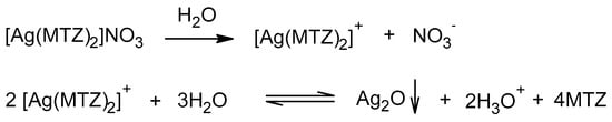Dissociation of silver (I) nitrate complex with metronidazole and cation [Ag(MTZ)2]+ hydrolysis.
