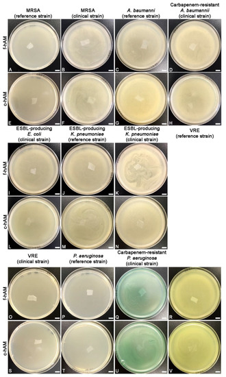 3.1. The hAM Patches Have No Antibacterial Activity against Selected Multidrug-Resistant Bacteria