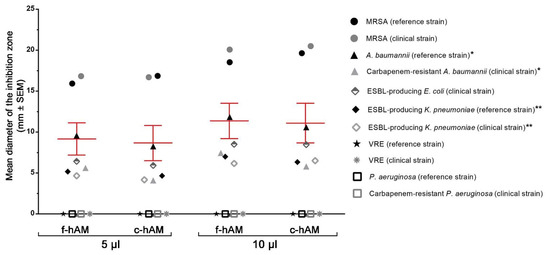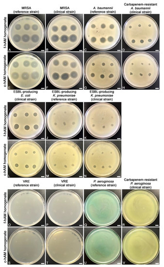 4.2. The hAM Homogenates Have Antibacterial Activity against Several Multidrug-Resistant Bacteria