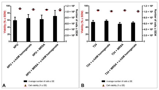 3.4. The c-hAM Homogenate Decreases the Number of Bacteria in Biomimetic In Vitro Models of the Normal and Cancerous Urothelium