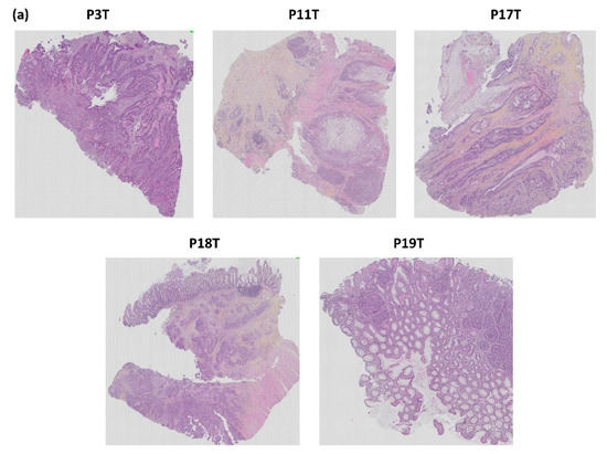 Pathology of CRC tumors from patients (p) 3, 11, 17, 18 and 19.
