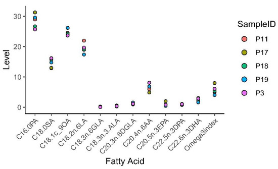 2.10. Fatty Acid Profiling and Omega-3 Index in Blood