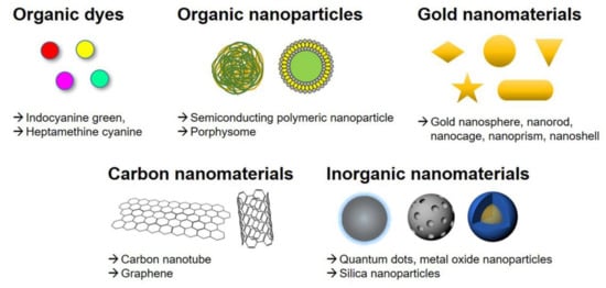 Among the various photothermal agents, organic nanomaterials often have good biocompatibility and biodegradability; however, they also have inherent limitations such as low photothermal conversion efficiency, poor photothermal stability, and complicated synthesis. In contrast, inorganic nanomaterials usually show excellent NIR light absorbance; high photothermal efficiency and photostability owing to their intrinsic optical properties, such as localized surface plasmon resonance (e.g., gold nanomaterials), narrow emission spectra, and structural features that offer advantages such as ease of synthesis and surface modification with different functional groups, including carboxylic, hydroxyl, and epoxy groups (e.g., carbon-based nanomaterials). However, their non-biodegradable nature and potential long-term toxicity remain unsolved issues [].