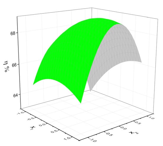 In the factorial experiments [31,32,33], the reaction yield is considered as being an indicator of the reaction optimization. It is markedly influenced by some conditions of the chemical reactions as temperature, time interval, solvent, solvent mixture, impurities, or pressure. These parameters are considered real variables. Some of these are significant variables.