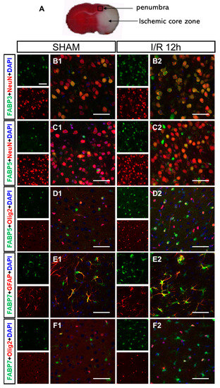3.4. I/R-Induced FABPs Were Expressed in Specific Cells in the Cortex