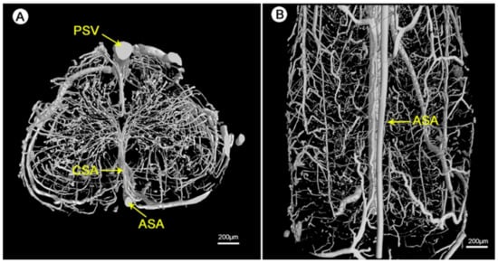 - Hu, J.; Cao, Y.; Wu, T.; Li, D.; Lu, H. High-resolution three-dimensional visualization of the rat spinal cord microvasculature by synchrotron radiation micro-CT. Med. Phys. 2014, 41, 101904. [Google Scholar] [CrossRef] [PubMed]