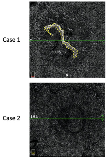 - Siggel, R.; Spital, C.; Lentzsch, A.; Liakopoulos, S. Comparison of Automated versus Manually Modified OCT Angiography En Face Slabs for Detection of Choroidal Neovascularization. Ophthalmol. Retina 2020, 4, 471–480. [Google Scholar] [CrossRef] [PubMed]