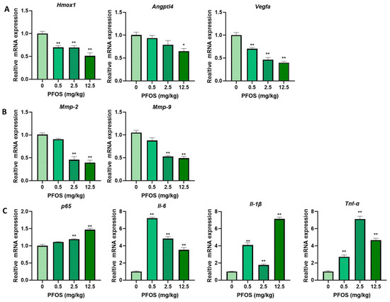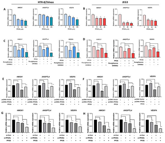 3.3. PPARγ Is Involved in Impaired PFOS–Induced Angiogenesis
