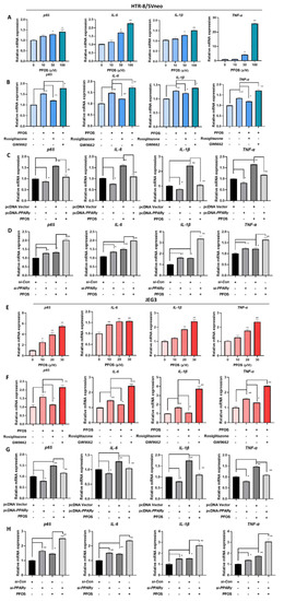 3.6. PFOS Alters mRNA Level of PPARγ Target Genes Associated with Inflammation