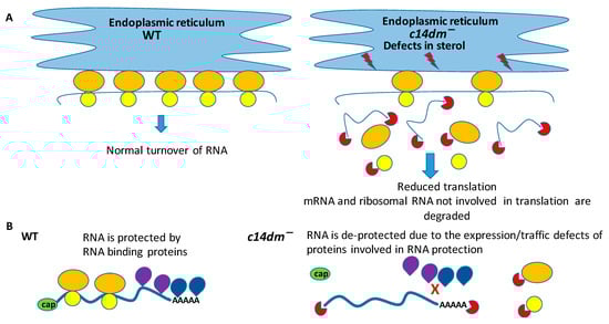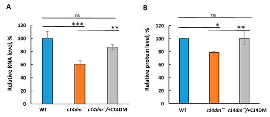 3.1. Defects in Sterol Synthesis Lead to Global Reduction in RNA and Protein Levels in c14dm−