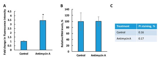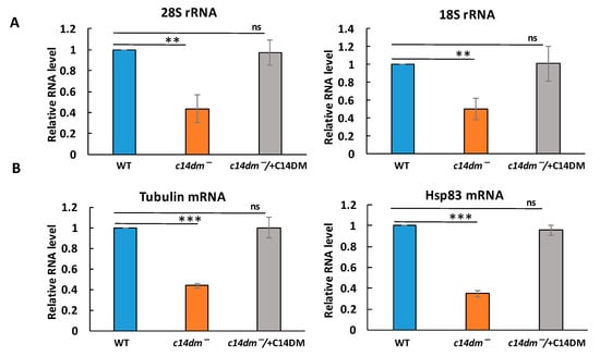 3.4. Reduced RNA Levels in c14dm− Is Not Caused by the Accumulation of Oxidants