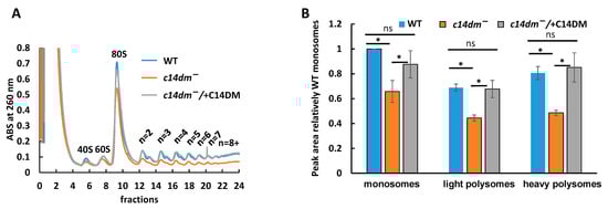 3.5. Polysome Profiling Reveals Defects in Translation in c14dm−