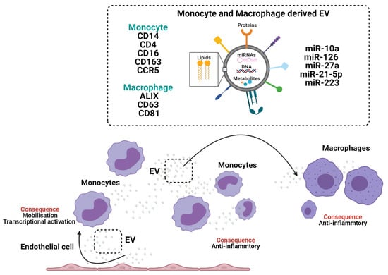 EV number, size and their biologically active material is altered in numerous inflammatory conditions and EV can alter the cellular functions of neutrophils, monocytes, macrophages and their precursor HSCs. Innate immune derived EV show diversity in both their EV-associated protein markers and those protein markers associated with their lineage [116].