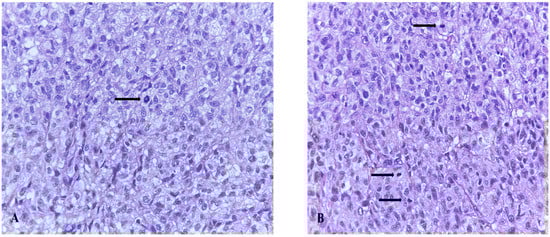 (A,B) Vaginal melanoma. Arrows—Nuclear mitoses—original magnification ×40.Hematoxylin-eosin stain (histological image courtesy of dr. Ileana Popa).