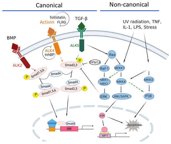 18. Ten Dijke, P.; Goumans, M.J.; Itoh, F.; Itoh, S. Regulation of cell proliferation by Smad proteins. J. Cell. Physiol. 2002, 191, 1–16. [Google Scholar] [CrossRef]