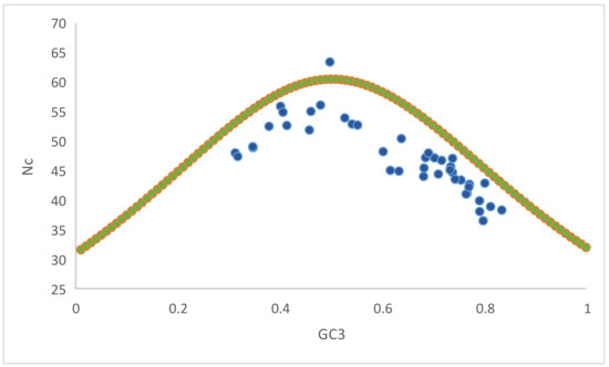 Nc-GC3 curve for determining the compositional constrain selection pressure and mutational force.